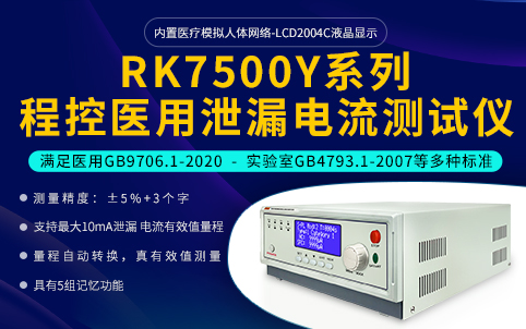 日期:2022-12-07RK7500Y系列醫用泄漏電流分析儀,內置醫療模擬人體網絡,涵蓋對地漏電流、接觸電流、患者漏電流、 患者輔助電流等多功能,可編程/一鍵序列化測試