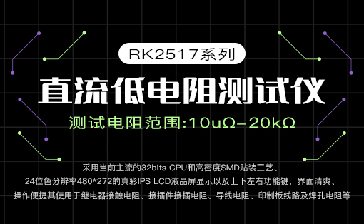 日期:2022-12-08RK2517系列直流電阻測試儀采用當前主流的32bits CPU和高密度SMD貼裝工藝、24位色分辨率480*272的真彩IPS LCD液晶屏顯示以及上下左右功能鍵,界面清爽、操作便捷;其使用于繼電器接觸電阻、接插件接插電阻、導線電阻、印制板線路及焊孔電阻等;溫度補償能免除環境溫度對測試工作的影響;RK2517系列提供了多種接口功能,可方便的與PC進行數據通訊和遠程控制。 -