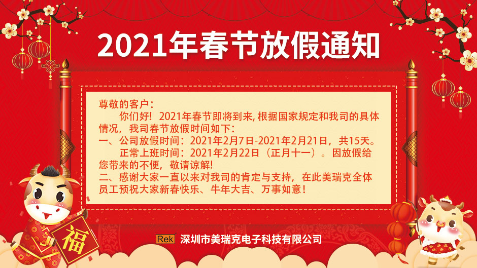 日期:2022-08-11五一勞動(dòng)節(jié)將至,根據(jù)國(guó)家規(guī)定和我公司的具體情況,我司放假時(shí)間為2021.05.01--2021.05.05,5月6號(hào)(周四)正常上班。4月25號(hào)(周日)、5月8號(hào)(周六)上班。因放假給您帶來(lái)的不便,敬請(qǐng)諒解! 感謝大家對(duì)我們工作的支持。美瑞克預(yù)祝大家節(jié)日快樂(lè)! -