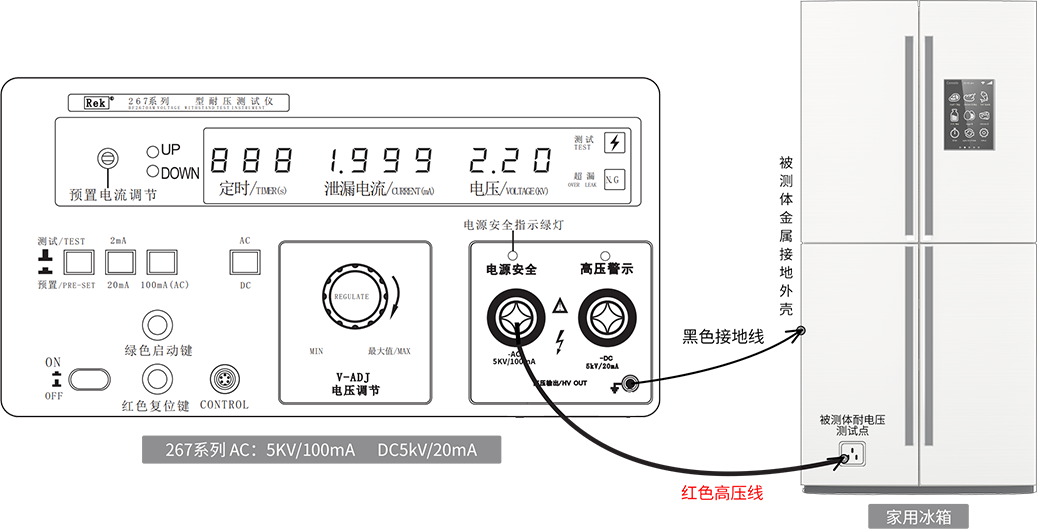 RK2672系列等型號(hào)的耐壓測(cè)試儀的輸出電壓都為5kV.擊穿電流分別為20mA, 100mA, 20mA.RK2671系列、RK2672系列為交直流兩用,
