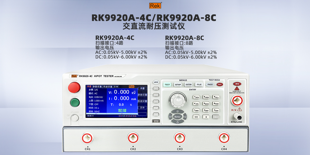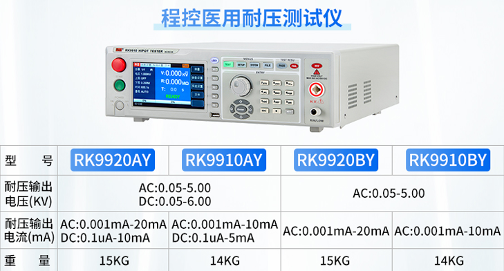 家用電器的耐要求并不高,5kV就能滿足絕大多數(shù)家用電器的耐壓測(cè)試需求,RK2670AM、RK2671AM/BM/CMRK2671DM是大電流型(交直流10KV,電流100ma),RK2672AM/BM/CM/DM/E/EM、RK2674A/B/C/-50/-100等型號(hào)的耐壓測(cè)試儀。其中RK267是手動(dòng)調(diào)節(jié),RK71、RK99系列可實(shí)現(xiàn)自動(dòng)化,通訊功能