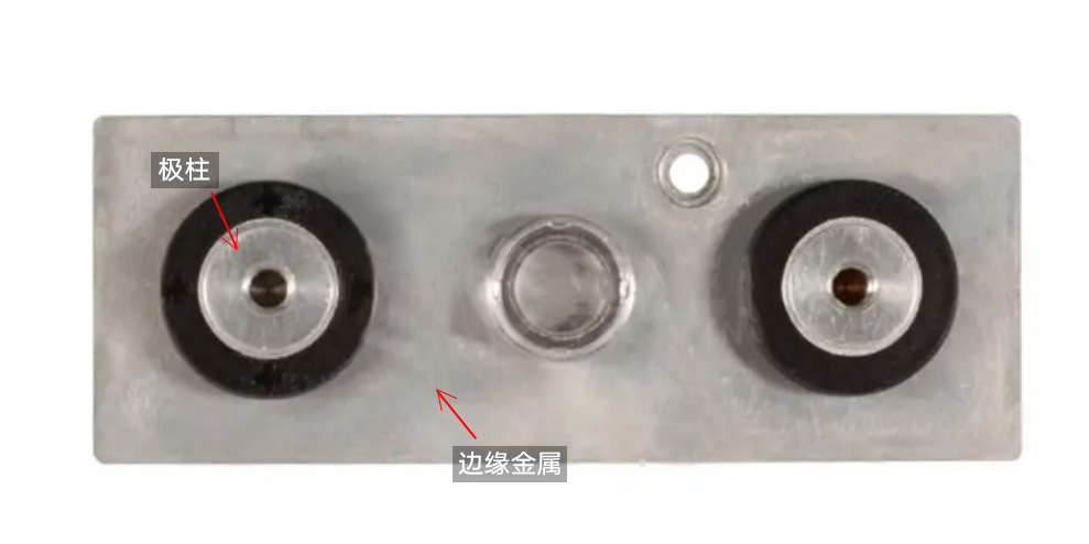 新能源-電池蓋板之耐壓測(cè)試:測(cè)試極柱與邊緣之間的耐壓程度。