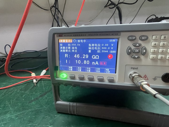 7、將被測(cè)物接入測(cè)量端,讀取絕緣電阻。